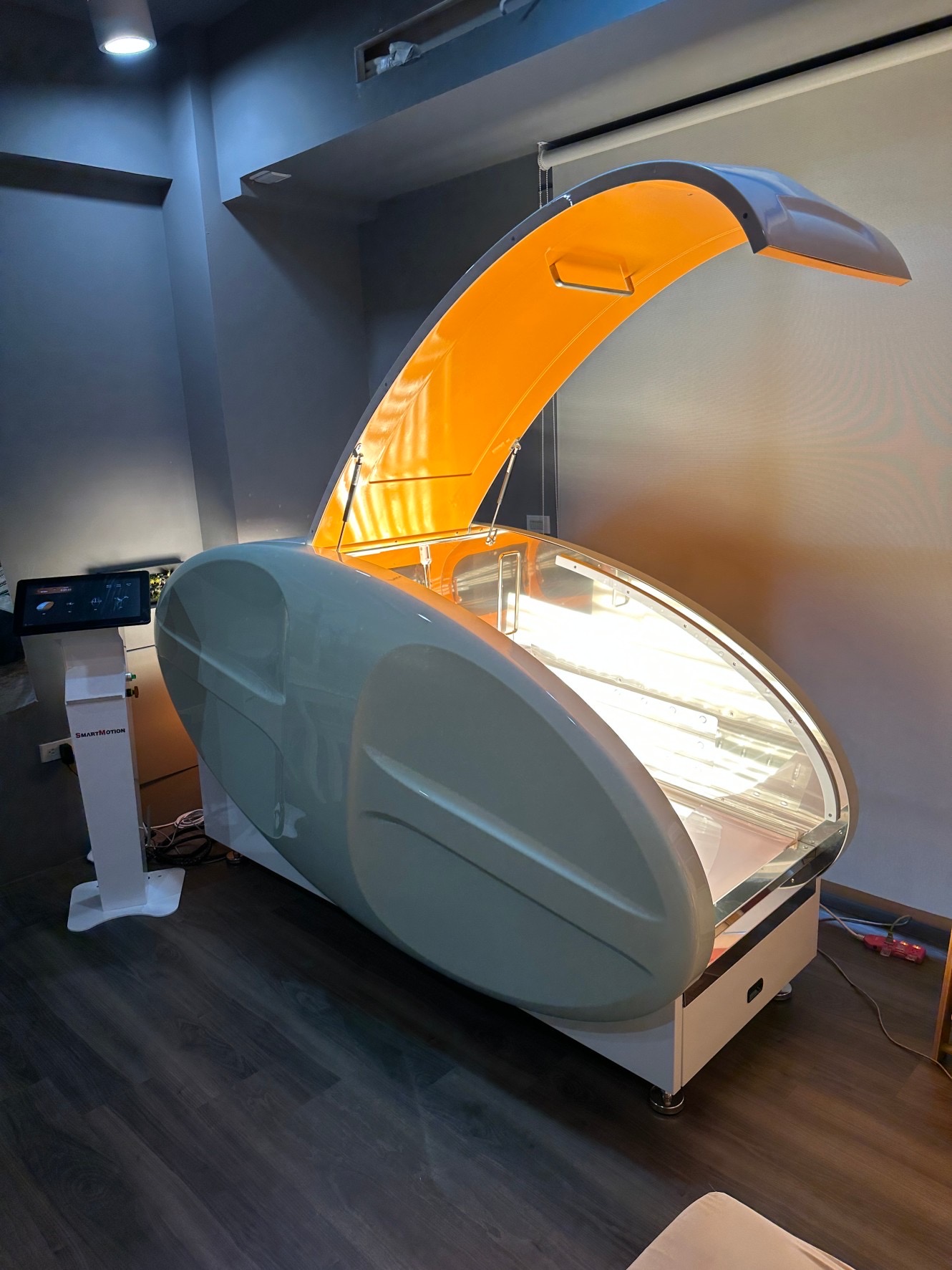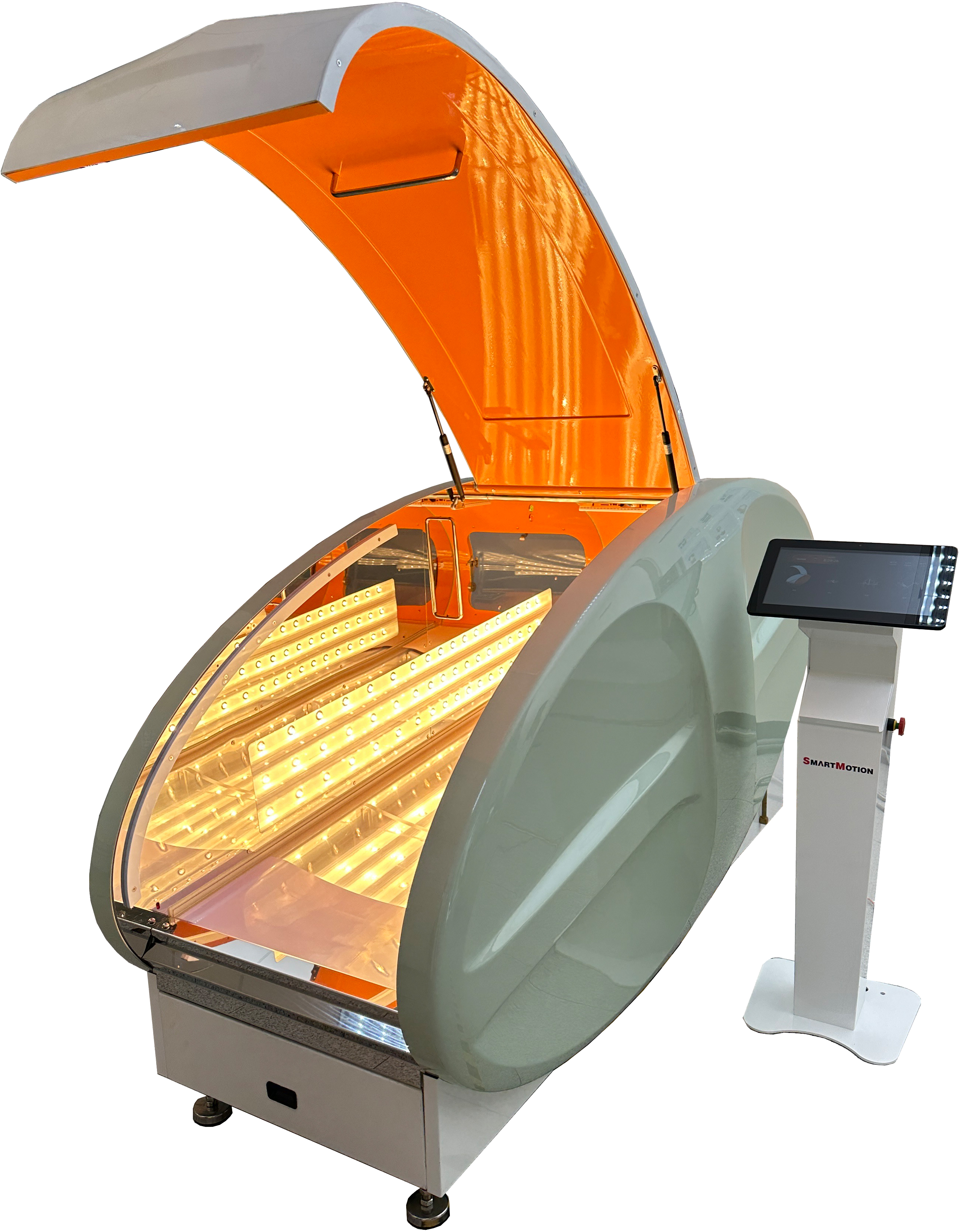 SmartMotion NIR Detox Capsule is a new whole-body near infrared hyperthermia equipment developed by Jianling Technology. This is an equipment that directly captures red, orange, and yellow visible (VIS) and near infrared (NIR) light. Through the exclusive water filter infrared A(wIRA) Hydro-light technology, the wavelength of light wave is retained at 600nm~1400nm, and the harmful ultraviolet light and blue light harmful to eyes are filtered out. Greatly improve the light permeability, let the human body absorb a large amount of near infrared light energy, activate the mitochondria in cells, raise the core temperature of the human body to 38°C ~ 40°C, improve the immunity and start the self-repair function, and through the "sebaceous glands" to sweat out harmful acid substances, free radicals, and heavy metals. The core technical value of SmartMotion NIR Detox Capsule is that the operating temperature of the cabin always kept at a mild 31~32°C, but the core body temperature can be raised to 38 ~ 40°C, besides, there will be no hot sensation, burn or thermal effect on the body or skin. Different from the traditional high temperature environment to make users sweat and detoxify, resulting in a very uncomfortable feeling. SmartMotion NIR Detox Capsule is a photohyperthermia equipment that simulates the full wavelength of solar spectrum "600nm~1400nm". The effect of light energy absorption on human body is completer and more comprehensive, which is completely different from the way of "single wavelength" of LED lamp in general. The effect of near infrared on human body has been described in many international literatures, which can achieve anti-cancer activity, deep detoxification, anti-inflammatory, improve immune capacity, promote metabolism, increase collagen, and reduce the production of stress proteins. In addition, the capsule is also equipped with an IoT intelligent system, which can instantly monitor the user's physiological information and usage time, significantly saving manpower requirements. The cloud-based system will automatically calculate 60, 90 and 120 minutes of use each month, helping venues to grasp business data. This is an epoch-making product different from traditional medical equipment.