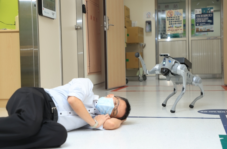 Robotic dog detects patient falls and vital signs in hospitals.