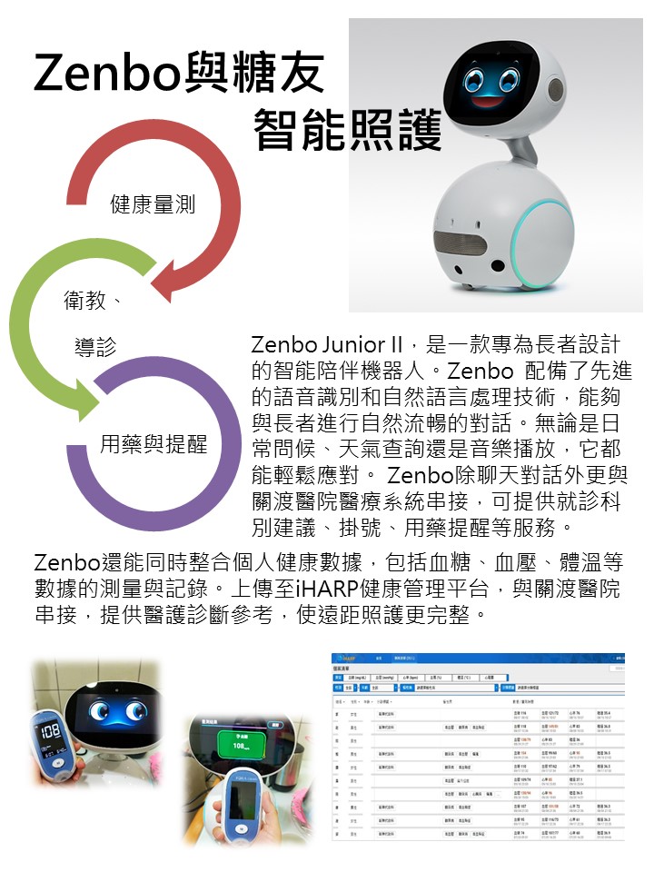 華碩推出健康陪伴小管家Zenbo Junior II,智能陪伴,實現人性化關懷,開啟樂齡新型態,將情感及科技連結,除了時刻把關身、心、靈健康狀態外,專為長者設計,符合長者日常所需,語音互動超簡單,除聊天對話外,還能同時整合個人健康數據,上傳至iHARP健康管理平台,與關渡醫院串接,提供醫護診斷參考,使遠距照護更完整。