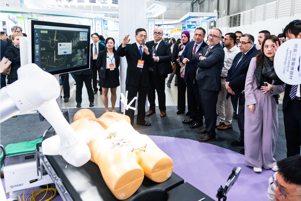 (右圖)Dr. Ercan VARLIBAŞ 參觀2024台灣醫療科技展,了解台灣企業最新醫療技術與創新成果。