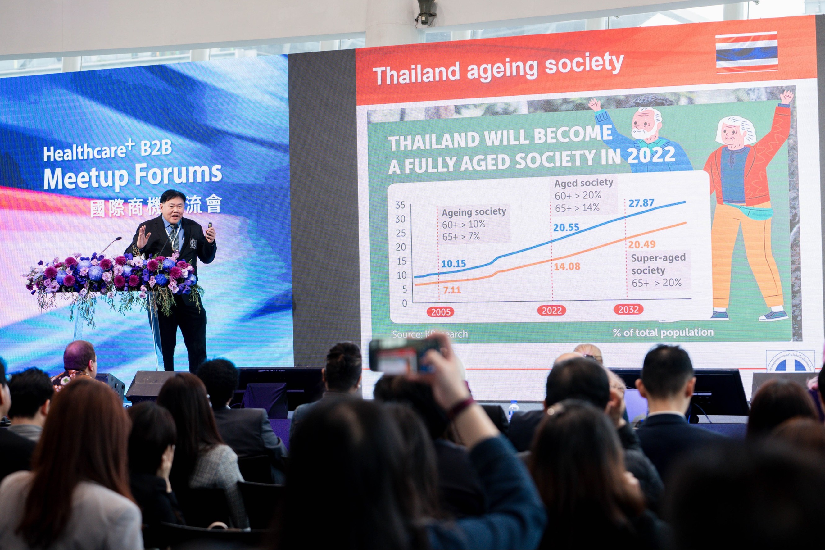 「泰國約有7000萬人口,已有高達31%進入60歲以上族群,」Bhandtivej指出,這代表泰國對健康檢測、長期照護、術後康復等高齡醫療設備的迫切需求。根據數據,泰國醫療保健支出已達253億美元,預估在2026年將大幅攀升至479億美元,占GDP比重將提高至6.6%。Bhandtivej坦言:「在醫療設備無法全面自給的情況下,我們積極尋求與台灣建立長期合作夥伴關係。」