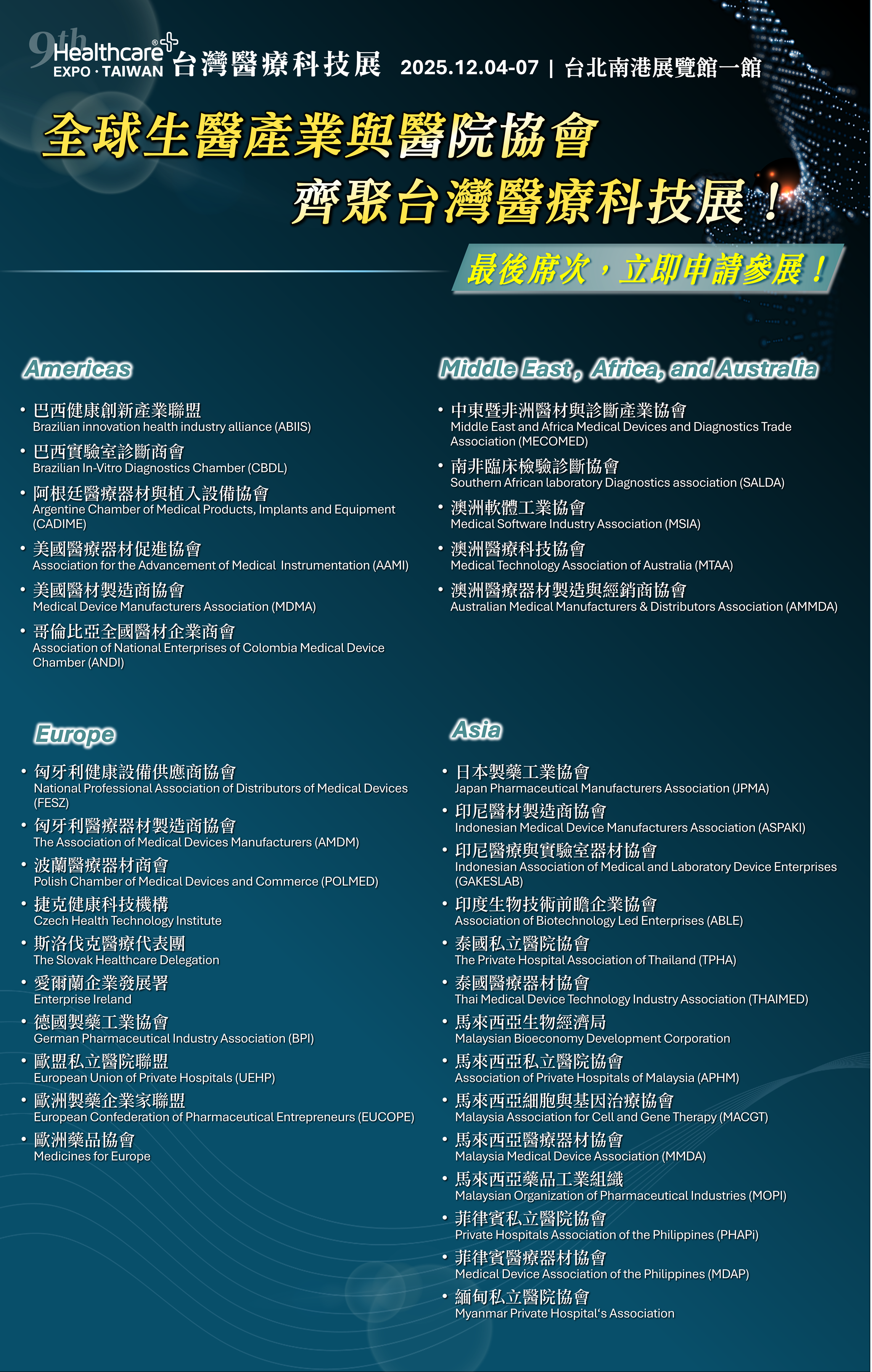 全球醫療與產業協會齊聚台灣醫療科技展!觀展登錄開放中